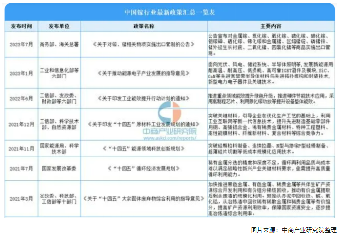 三、鎵行業(yè)發(fā)展政策及現(xiàn)狀