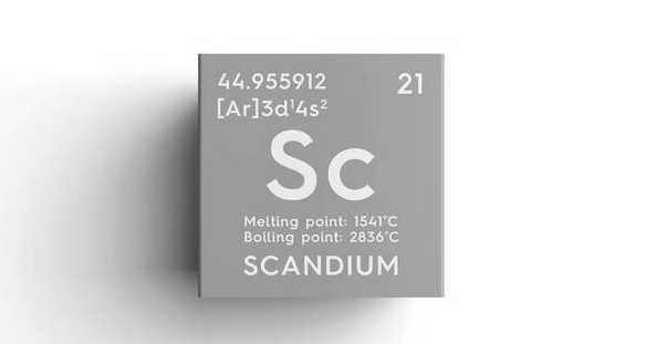 鈧是一種柔軟質(zhì)輕、銀白色的過(guò)渡金屬,密度2.99 g/cm3,熔點(diǎn)1541℃(比鐵、鎳、稀土鑭、鈰、鐠及釹等還要高),沸點(diǎn)2831℃(僅次于元素錸(5627℃)、鉬(5560℃)和鈷(2870℃))。易溶于水。