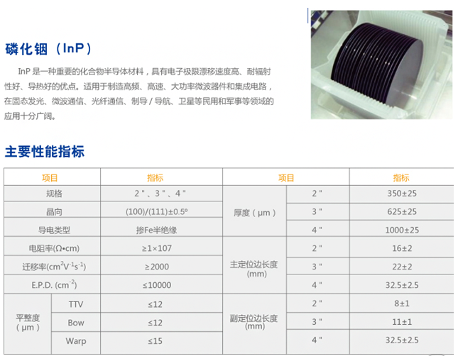 磷化銦晶片,高質(zhì)量大直徑低位錯(cuò)磷化銦單晶是第二代半導(dǎo)體材料。泛美